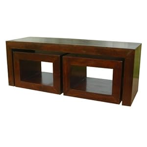 Best Deals Homescapes - Dakota - Long John Coffee Table with 2 Cubes - Dark - 100% Solid Mango Hard Wood - ( No Veneer ) Hand Crafted Furniture in United Kingdom